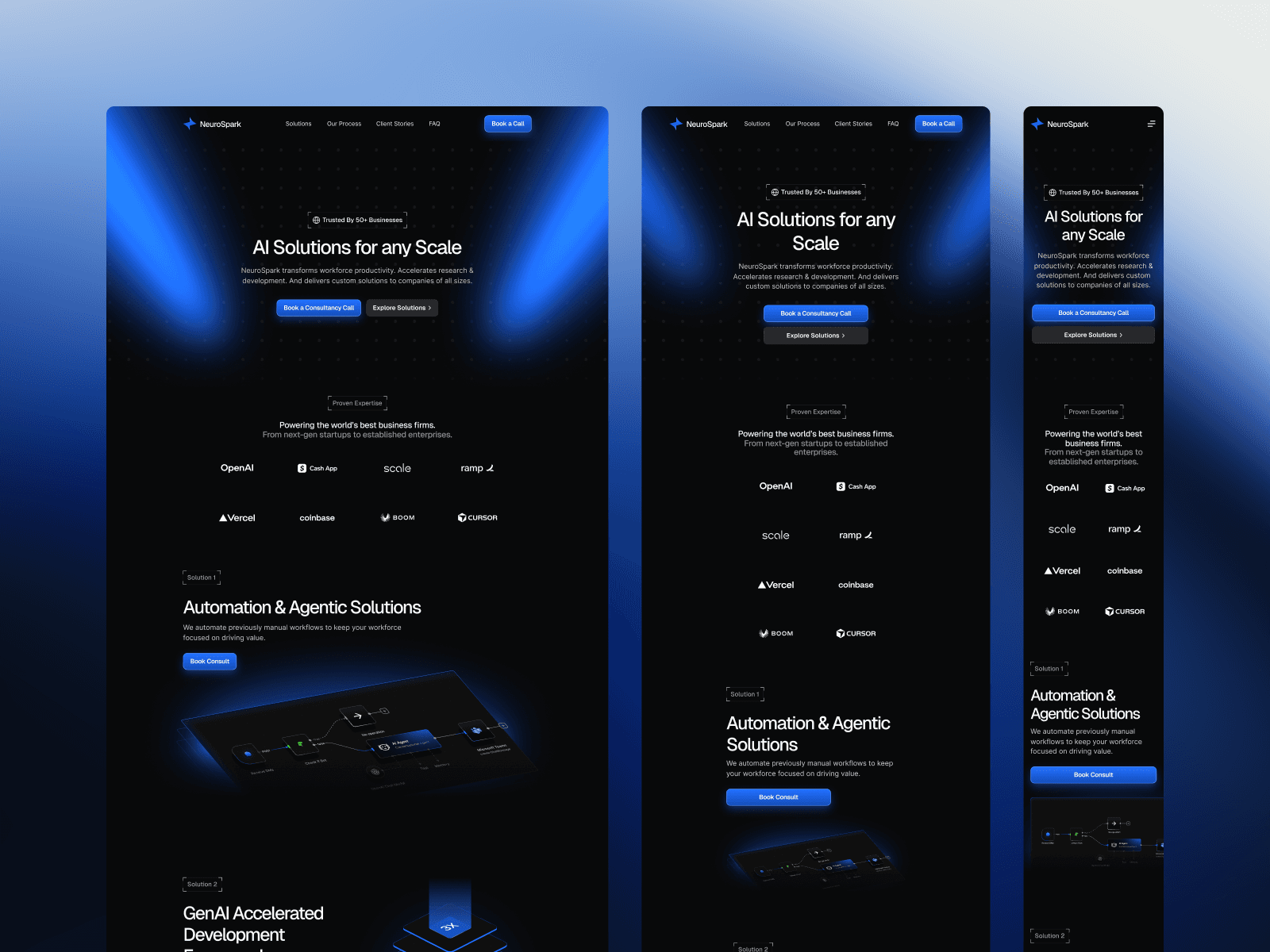 This project focused on building a complete digital presence, covering website design, website development, and logo design, to position NeuroSpark as a modern, credible, and future-ready AI brand.